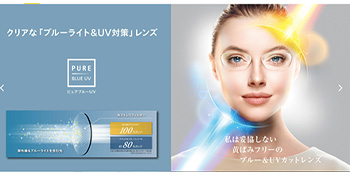 ・ピュアブルーUV レンズ生地黄ばみなし:日常の光ストレス 紫外線+ブルーライトをカット